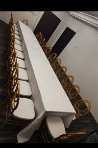 يوجد لدينا تأجير كراسي وطاولات بجودة عالية وتوفر الراحة والاستدامة مصممة بعناية لتوفر الدعم المثالي للجسم وتوفر الراحة للضيوف أثناء الجلوس. أما طاولات فلدينا مجموعة متنوعة من ايجار طاولات ، فهي قوية ومتينة وتوفر مساحة كافية لتناول الطعام وترتيب الأشياء.